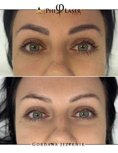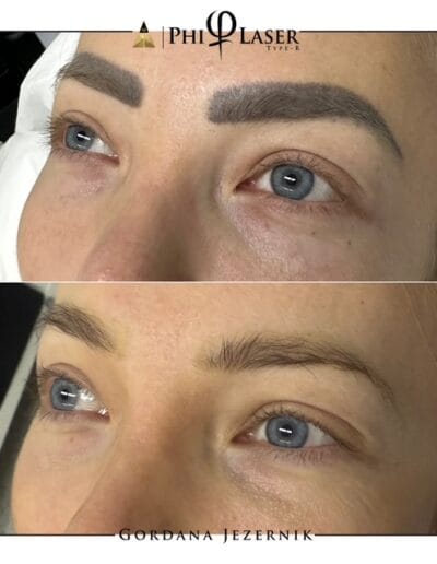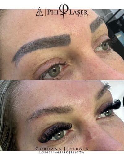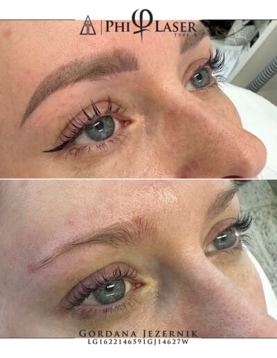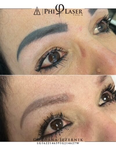 Phi laser je edini v Sloveniji, s katerim lahko odstranimo pigment od permanentega vrisovanja obrvi ter permanenta ustnic, brez da ob tem poškodujemo kožo ali dlake (obrvi).